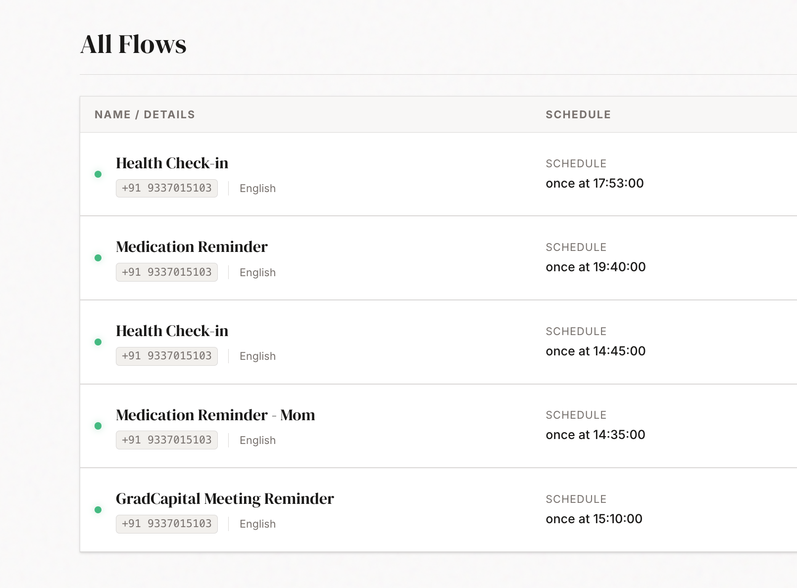 Set up one-time or recurring calls. Schedule in advance and let our AI handle the rest.